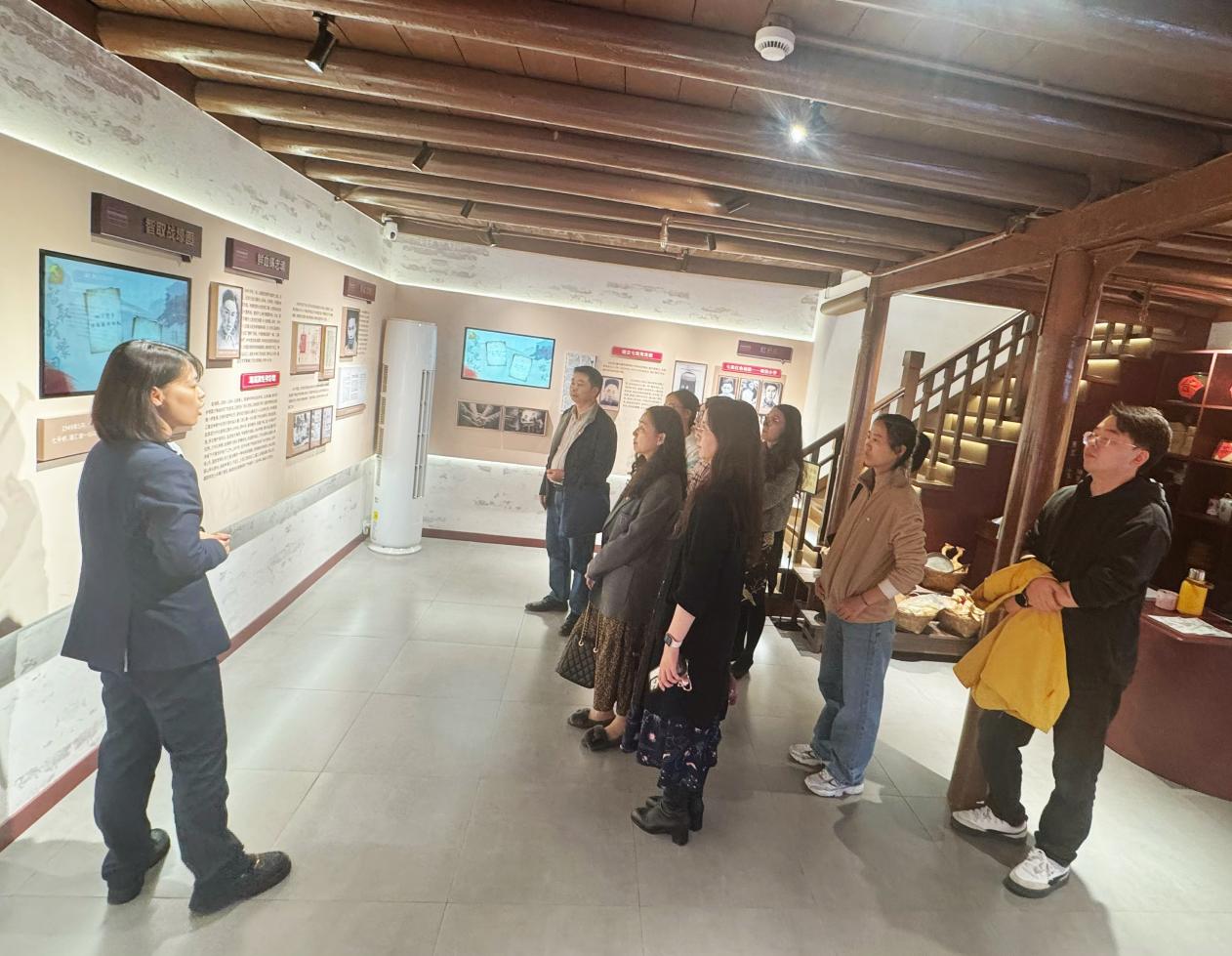 随后,大家在七宝老街开展红色寻访,通过“党史故事微课堂”形式,边走边学、边看边悟,体会红色记忆与城市文化的交融。参观结束后,党员们围绕“忠诚与信仰”主题展开现场交流,结合岗位实际分享感悟,探讨如何在新时代高校教育工作中践行初心使命、担当育人职责。