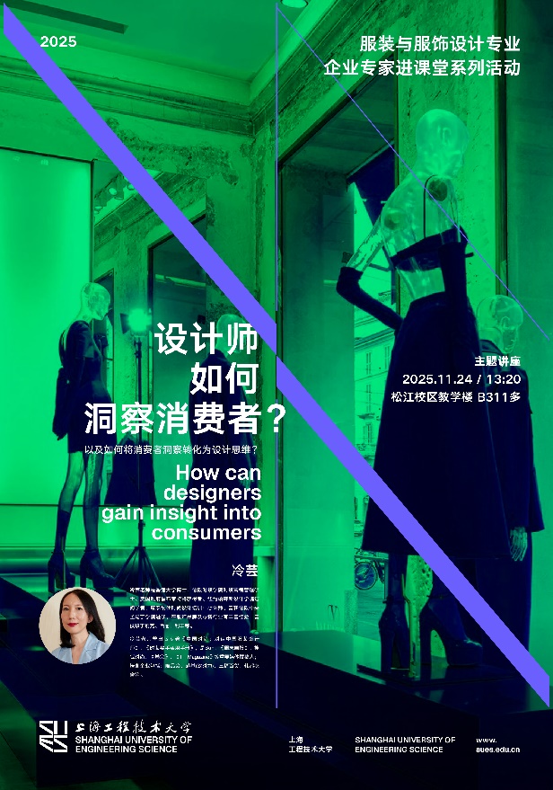 为拓展高质量学习资源,必威betway西汉姆艺术系邀请著名时尚学者冷芸老师来校授课。11月24日下午,冷芸老师来到《设计调研与写作》课堂,为同学们做了题为《设计师如何洞察消费者》的专题讲座,通过一系列互动问答和现场实验深入浅出地为学生讲授了如何运用观察法洞察消费者需求。讲座后,冷芸老师耐心与学生开展互动交流,针对同学们在学业和时尚行业方面的疑问,冷芸老师耐心做了一一解答。
