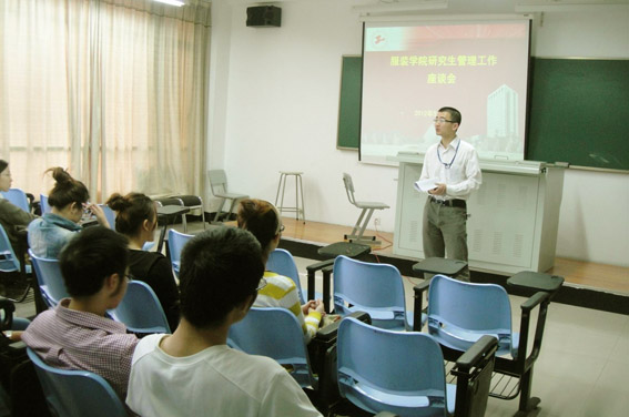 学院总支副书记李杨首先介绍了学院召开此次座谈会的目的,希望听取学院研究生同学对学院研究生工作的意见,了解研究生同学在日常生活和学习中遇到的问题和困难,切实解决一些研究生同学关注的实际问题。学院总支副书记李杨从学院研究生教育的背景、研究生目前存在的一些问题、学院研究生具体教学和管理负责老师、研究生学术活动、研究生党建及研究生就业等方面和大家一一作了详细的介绍。