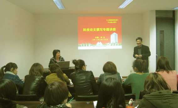 宋允老师首先介绍了科技期刊的种类,提醒研究生由于科技期刊种类繁多,要求不一,所以投稿时要认清各个期刊的所属性质和刊登内容。 随后,宋允老师以其《上海纺织科技》为例,介绍了各期刊的办刊宗旨以及栏目分类。《上海纺织科技》的栏目有研究报告、专题论坛、经验交流、工艺研究、产品设计与开发等十一类,宋允老师针对每一类栏目分别作了详细的介绍,包括每个栏目的性质、内容以及出稿篇数等。其中还讲到当今投稿的热点论文,对学生今后论文的撰写进行了指导。