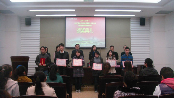 下午16:00,颁奖典礼在图文信息中心第四报告厅举行。在颁奖典礼上,王明复处长及各位颁奖嘉宾为获奖同学颁发了证书,服装学院获奖学生代表服装学院分团委副书记陆秀萍上台发言,表达了对海宁经编纺织产业园区的感谢,并表示将不断进步,在未来取得更大的成绩。虞铭虹副主任在随后的讲话中回顾了她连续三届参加颁奖典礼的感触,勉励同学们以积极向上的学习态度不断进取,志存高远,将来为我国的纺织服装事业做出贡献。王明复处长在讲话中强调,感谢海宁经编纺织园区对学校学生工作的支持,希望同学们常怀感恩之心,不忘感恩之意。他指出这并不是简单的颁发企业奖学金,而是希望同学们获得奖学金所赋予的一种积极进取、不断进步的企业精神。