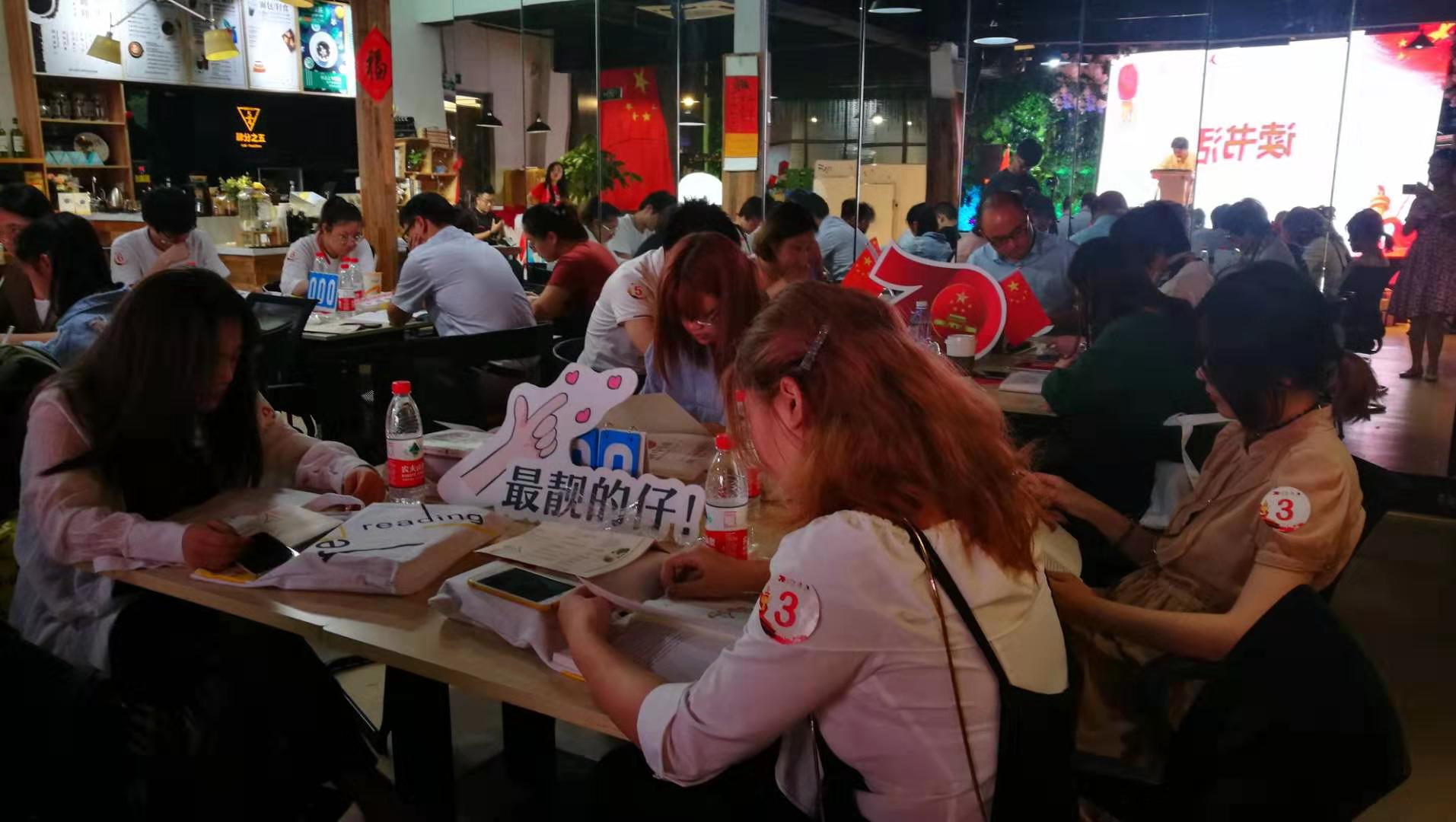 下午服装学院党委副书记张漪老师和党支部的陈寅珕老师、学生党员唐煦阳、郑明玮、陈易如和入党积极分子王孟迪、陆文倩等同学在长宁校区风中心进行了一系列的活动。 首先在签到入场后,我们在主持人的介绍下互相认识进行了暖场十分温馨。这次的领导讲话别具风味,不但让党支部的党员和入党积极分子认识到了读书的意义,结识了樊登读书会这样优质的读书交流平台。也深刻的让我感受到了伟大祖国这七十年来去的的成就。