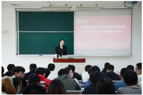 OnApril 14th, the School ofTextiles and Fashion heldIndustry-Academia Collaboration Education Mobilization Conference andTheoretical Education for the 2022 Intake under the Industry-AcademiaCollaboration Program in Classroom F102 of the academic building.Participants included Xie Zhixia, Deputy Secretary of the CollegeParty Committee, Liu Chaofang, Industry-Academia CollaborationCounselor, Ren Fan, Alumni Counselor, Min Yuhan, Counselor forTextile Engineering Majors, outstanding students from the 2022Industry-Academia Collaboration program, and all studentsparticipating in the 2022 Industry-Academia Collaboration program.