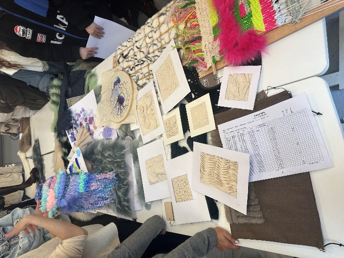 Toprovide students with a more intuitive understanding of fur fabrics,Ms. Wang specially brought a large number of cutting-edge fur designsamples. She explained the characteristics, craftsmanship, andgroundbreaking design ideas of various fur types to the studentson-site, illustrating the unique emotional value added to each furpiece. Additionally, Ms. Wang commented on the students' fabricdesign samples and inspiration atmosphere sketches, receivingenthusiastic interaction and responses from the students, and theatmosphere was lively.