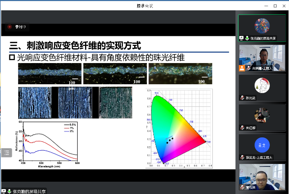 会议共分为两部分,前半部分张克勤教授以“刺激响应变色纤维材料”为专题讲座,介绍了刺激响应变色纤维材料的制备方法及其在纺织服装、时尚产业、军事国防等领域的应用,后半部分张教授结合自身丰富的学术经验,从“准备做什么”、“为什么要做”、“打算怎么做”、“为什么能做”以及“能成什么样”等5个方面,详细介绍了基金申报书的写作方法和注意事项。会上,部分教师在选题、创新点和申报代码等具体问题上与张教授进行了深入的交流,辛斌杰院长还针对青年教师学术能力培养和国内外纺织学科发展趋势等重要议题与张克勤院长充分交换意见,双方表示后续应加强学术交流与合作。